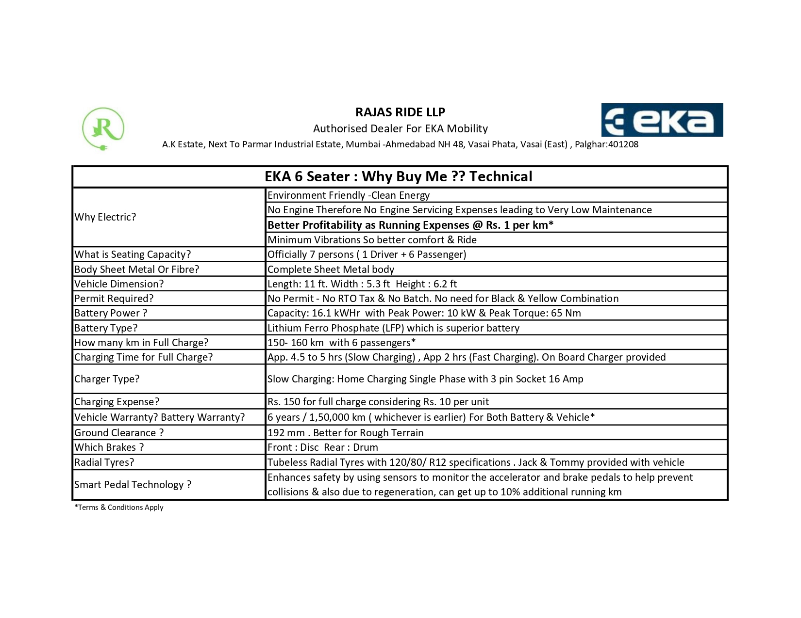 We, Rajas Ride is an Authorised dealer for EKA Mobility- India’s emerging electric commercial vehicle manufacturers. The business provides customers with the opportunity to explore, purchase, and service electric vehicles, backed by manufacturer support and genuine parts. Electric vehicle range varies from 3 Wheeler (Cargo & Auto Rickshaws) to Bus ( upto 50 seater) & Trucks ( upto 55 T) catering to end user requirement in multiple segments.