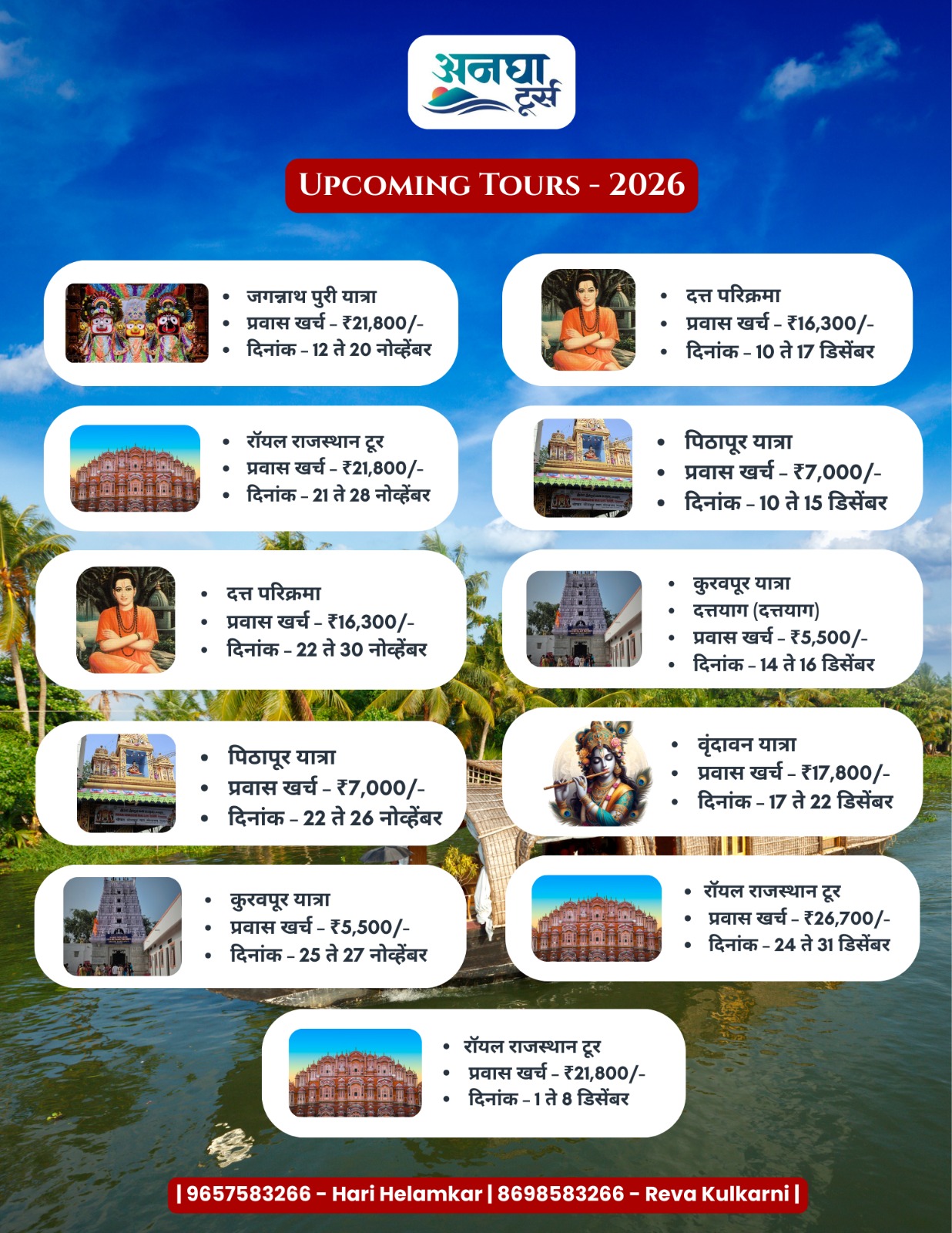 Anagha Tours | Premium Group Specialist✔️ Comfort & Quality Assured✔️ Well Planned Itinerary✔️ Best Hotels & Veg Food✔️ Dedicated Tour Management“प्रवास फक्त पोहोचण्यासाठी नाही, तर अनुभवण्यासाठी असतो.”